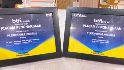 Penghargaan itu, bukan kali pertama disabet PT Propernas Nusa Dua. Sebelumnya, Bank BTN Syariah juga memberikan penghargaan pada ajang BTN Syariah Developers Awards Tahun 2023.