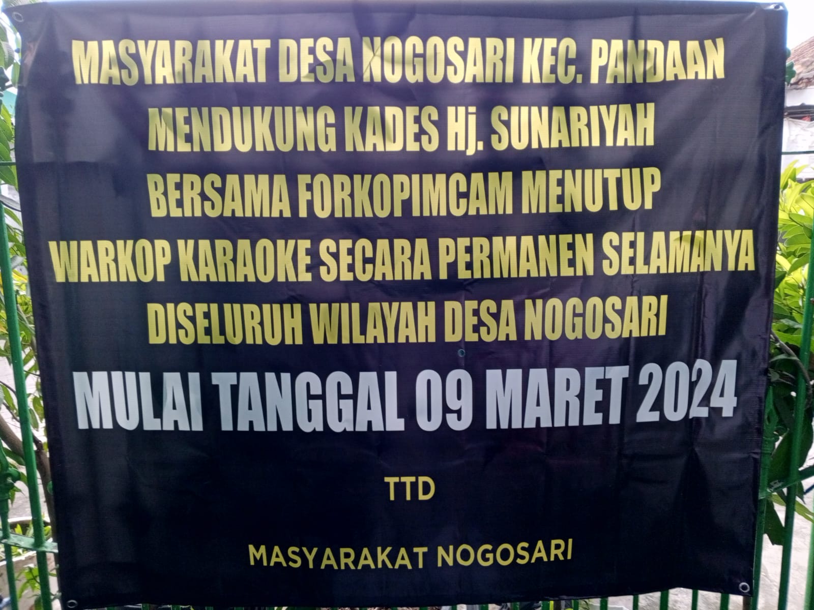 “Upaya warga desa dalam menjaga kondusifitas moral dan agama dari potensi pekat ini, sangat tidak mudah. Baru setelah pergantian kepala desa pada akhir 2023, kami berhasil mendapat dukungan dari Kades Nogosari yang baru, untuk segera menutup dan membubarkan kegiatan kemaksiatan tersebut. Aksi kami tidak langsung dilakukan secara keras melalui Razia, melainkan sekian kali proses pertemuan dengan semua pihak, baik pemerintah, perwakilan warga, dan pemilik warung karaoke itu sendiri. Kami pun selalu memberikan kesempatan secara baik-baik, tapi mereka yang melanggar," katanya.