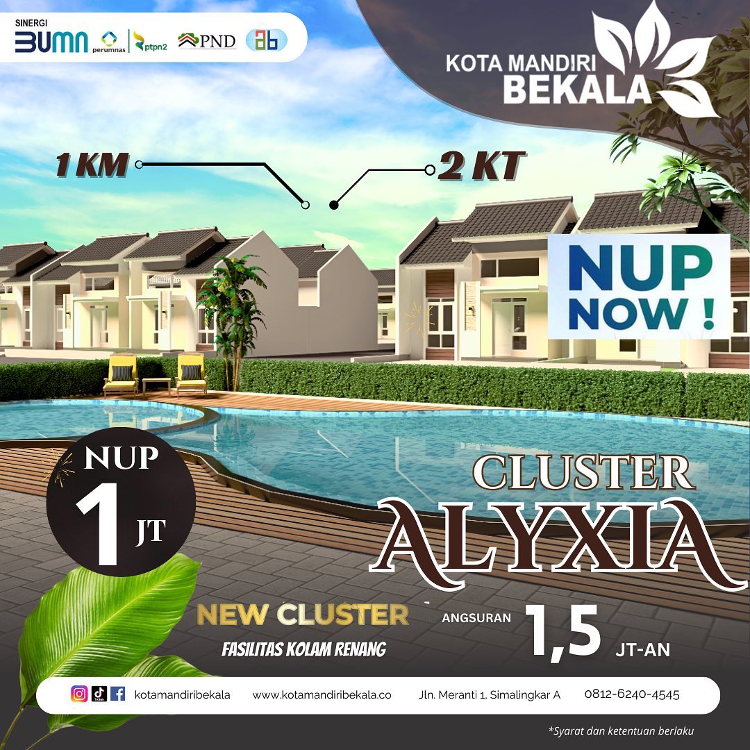 Pada Cluster Alyxia, akan dibangun 719 hunian. Pada cluster tersebut, terdapat tiga tipe bangunan rumah yakni tipe 36, 40 dan 54. Menariknya, Cluster Alyxia ini, akan dilengkapi dengan fasilitas kolam renang.