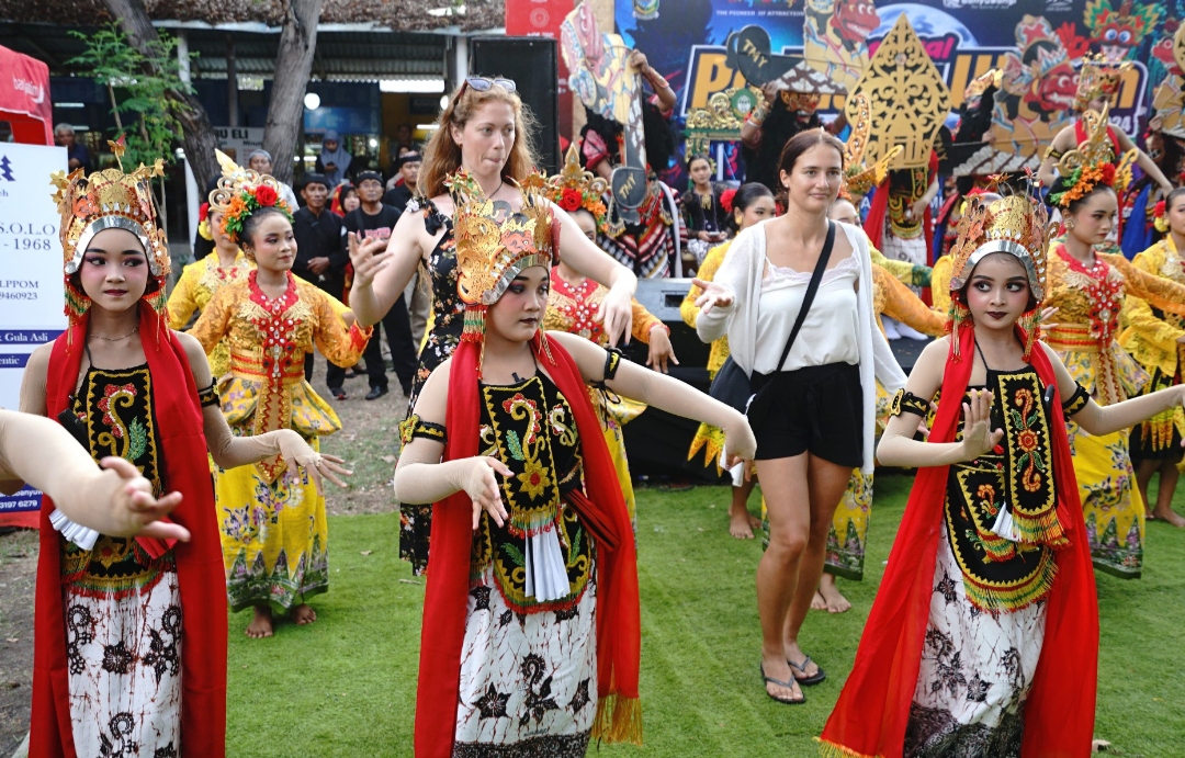 Penampilan mereka ini mampu membuat pengunjung terhibur dan terkesima. Bahkan ada yang sampai ikut menari bareng para penari di atas pentas. Salah satunya wisatawan asing.
