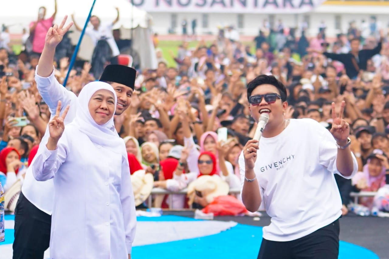 [caption id="attachment_6250" align="alignnone" width="1280"] Denny Caknan menghibur pendukung dan relawan paslon nomor urut 2, Khofifah-Emil pada Kampanye Akbar di Jember. (Insani/Jurnas.net)[/caption]