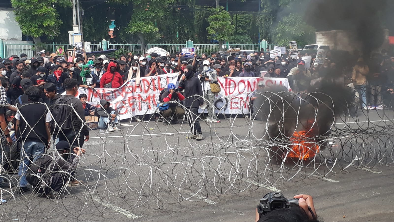 Ratusan mahasiswa di Surabaya menggelar aksi demonstrasi bertajuk 'Indonesia Gelap' di depan Gedung DPRD Jawa Timur. (Insani/Jurnas.net)[/caption]
