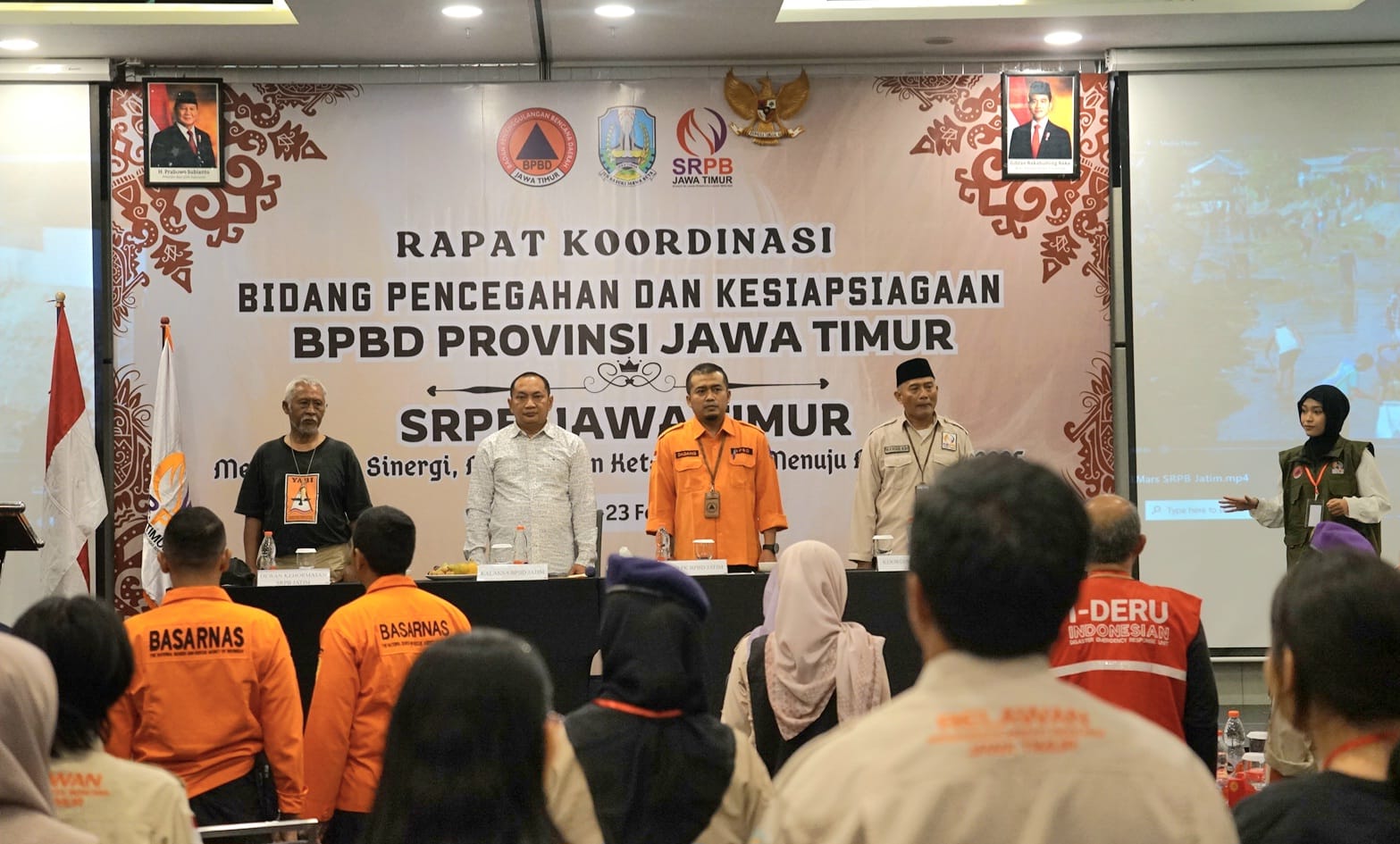 Rapat ini dibuka oleh Kalaksa BPBD Jatim, Gatot Soebroto, yang didampingi oleh Plt Kabid Pencegahan dan Kesiapsiagaan Dadang Iqwandy, serta jajaran pengurus SRPB Jatim, termasuk Koordinator SRPB Jatim, Subekti Rahmad Kimiawan. Dalam sambutannya, Gatot menyoroti dinamika kebencanaan di Jatim dalam beberapa tahun terakhir, termasuk tren penurunan bencana dalam tiga tahun sebelumnya dan lonjakan kejadian pada 2024.