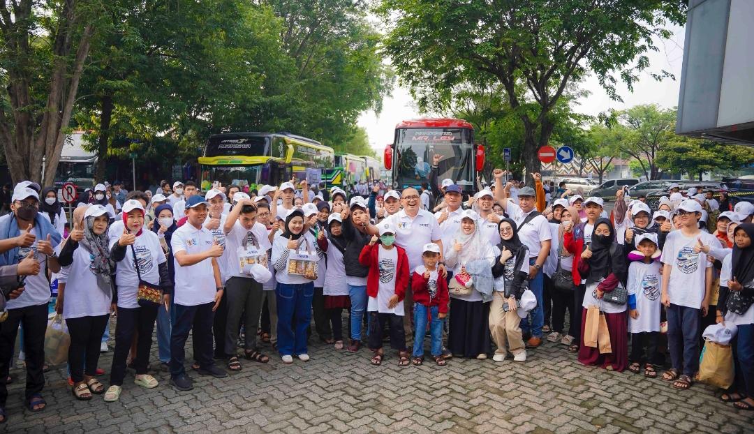 Direktur Utama PT SIER, Didik Prasetiyono, menyempatkan foto bersama masyarakat sebelum melepas mudik gratis. (Dok: Humas PT SIER)[/caption]