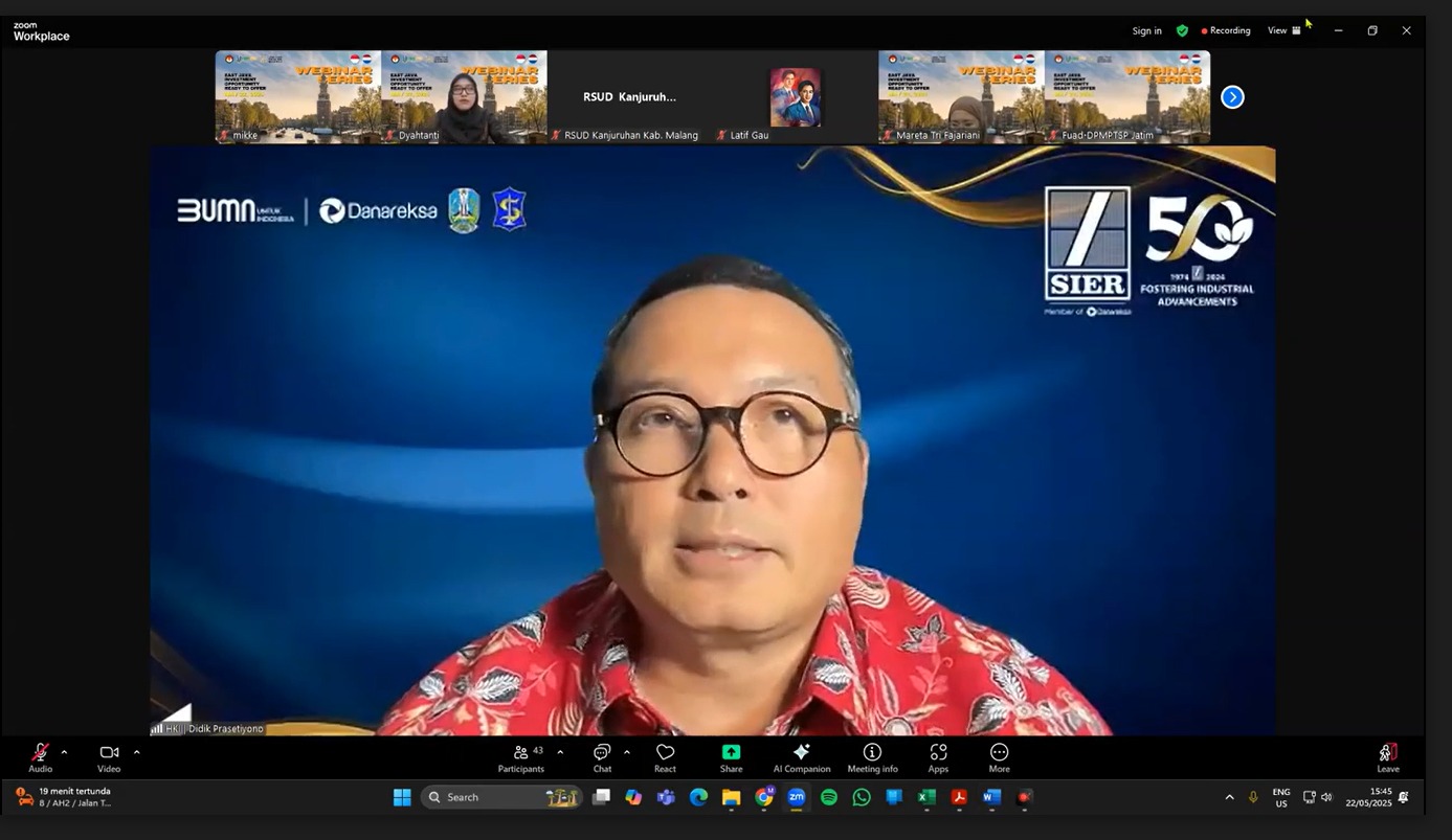 Jurnas.net - Komitmen Jawa Timur dalam memperluas kerja sama investasi global kembali ditegaskan melalui webinar internasional “Investment Opportunity Ready to Offer – Netherlands Series”. Forum virtual yang digelar oleh Dinas Penanaman Modal dan Pelayanan Terpadu Satu Pintu (DPMPTSP) Jatim bersama Kedutaan Besar Republik Indonesia (KBRI) di Den Haag ini menjadi momentum strategis dalam mengenalkan potensi kawasan industri hijau dan berkelanjutan kepada mitra dari Kerajaan Belanda.