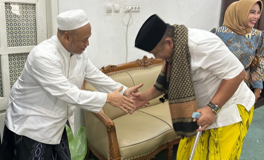 Sekjen Golkar Muhammad Sarmuji didampingi Ketua DPD Golkar Jatim Ali Mufthi silaturrahim dengan pengasuh Ponpes Al Khoziny. (Istimewa)[/caption]