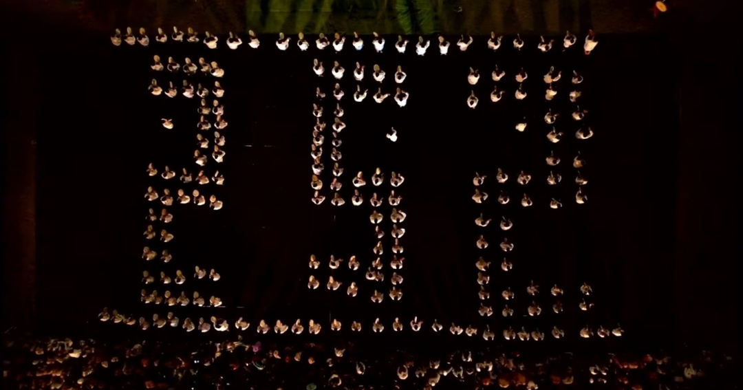 Ribuan pasang mata langsung tersedot ke atraksi kolosal tersebut. Berdurasi sekitar 30 menit, para penampil yang rerata masih sebagai pelajar (SD-SMA) itu, menyuguhkan atraksi yang luar biasa. Tak hanya instrumen musikalitasnya yang memukau. Koreografinya yang disorot dengan drone dan tampil di layar besar juga membuat terpana.