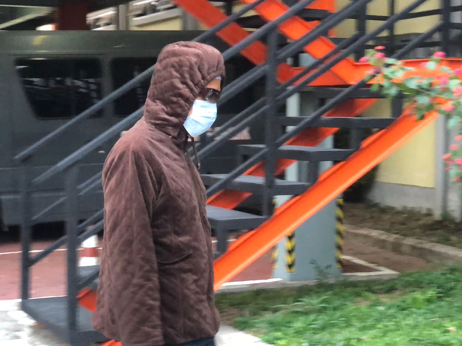 NS (pakai masker) pelaku pencabulan santriwati saat diamankan di Mapolres Gresik. (Dok: Jurnas.net)[/caption]